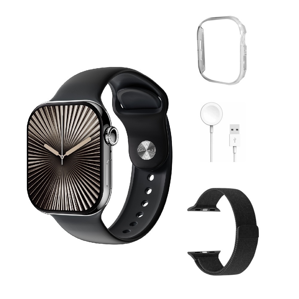 Monitoreá ritmo cardíaco, presión, oxígeno y sueño; atendé llamadas por Bluetooth; IP68 resistente al agua; 2 mallas incluidas y carga inalámbrica.